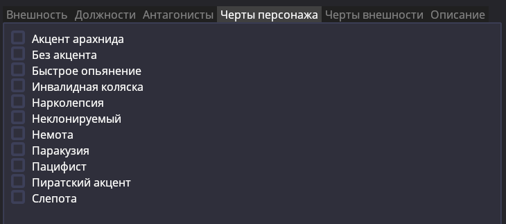 Черты персонажа — позволяет добавить индивидуальность вашему персонажу.